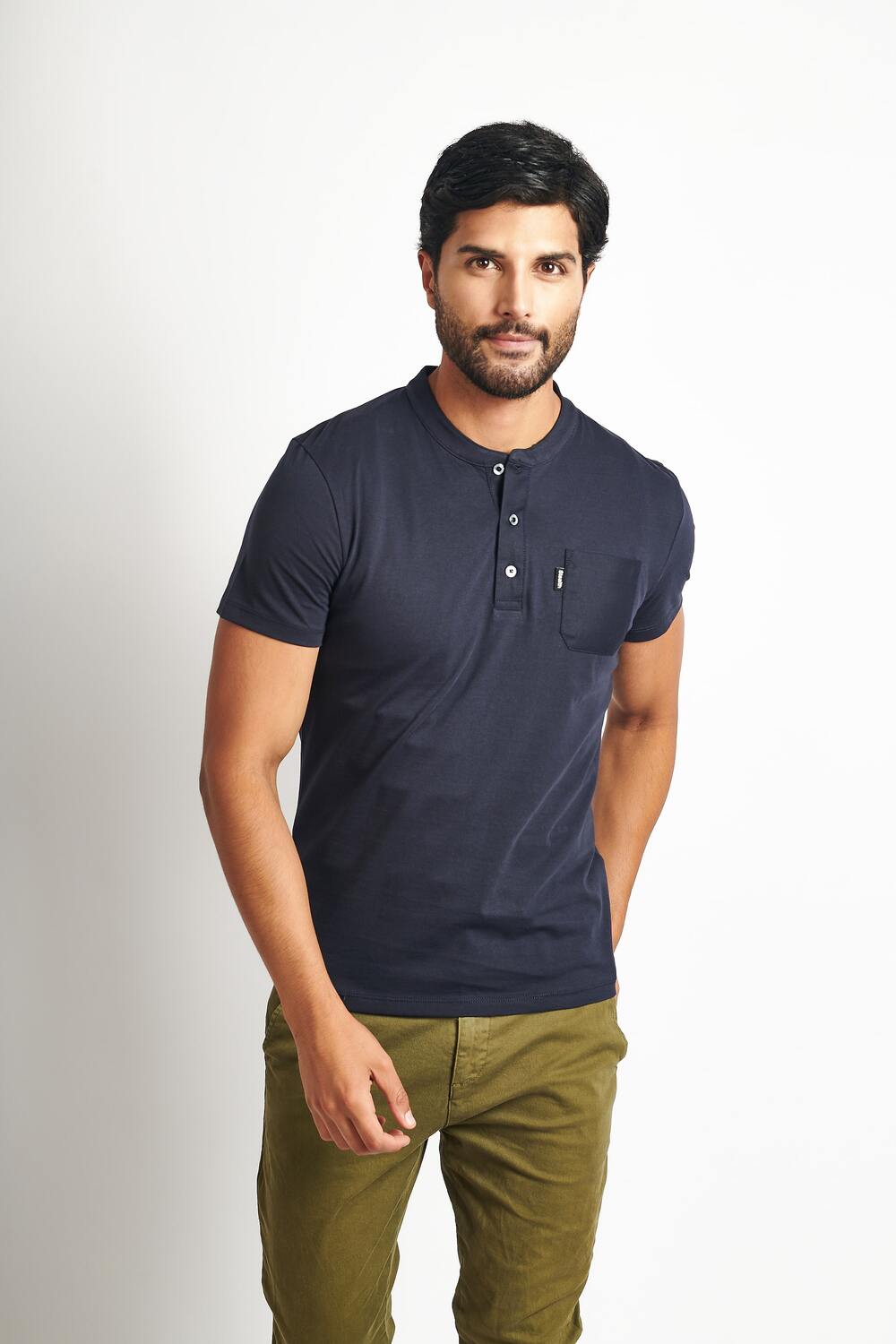 Polo Cuello Henley Azul