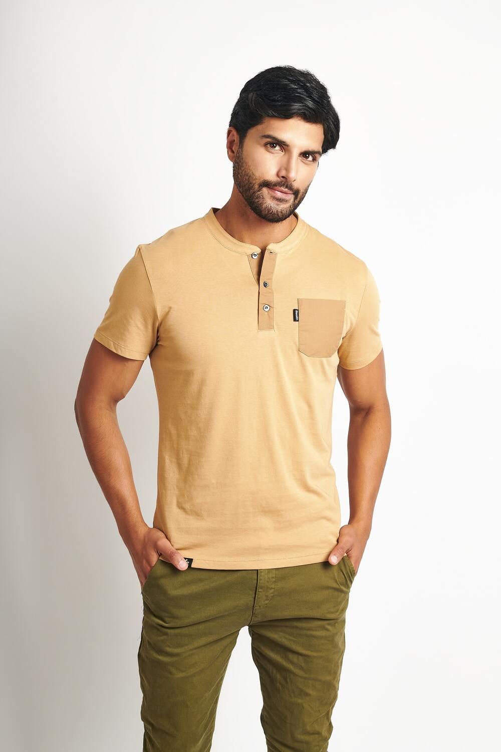 Polo Cuello Henley Camel