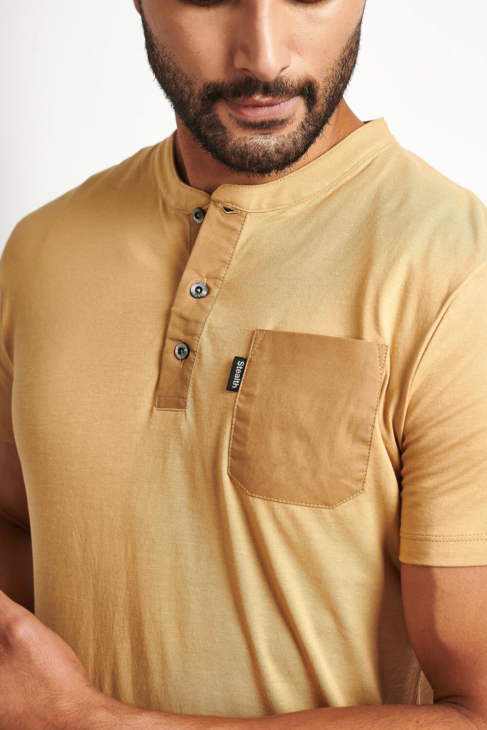 Eleva tu estilo casual con el Polo Henley para hombre de manga corta Stealth, diseñado para ofrecer una combinación perfecta de elegancia y confort.