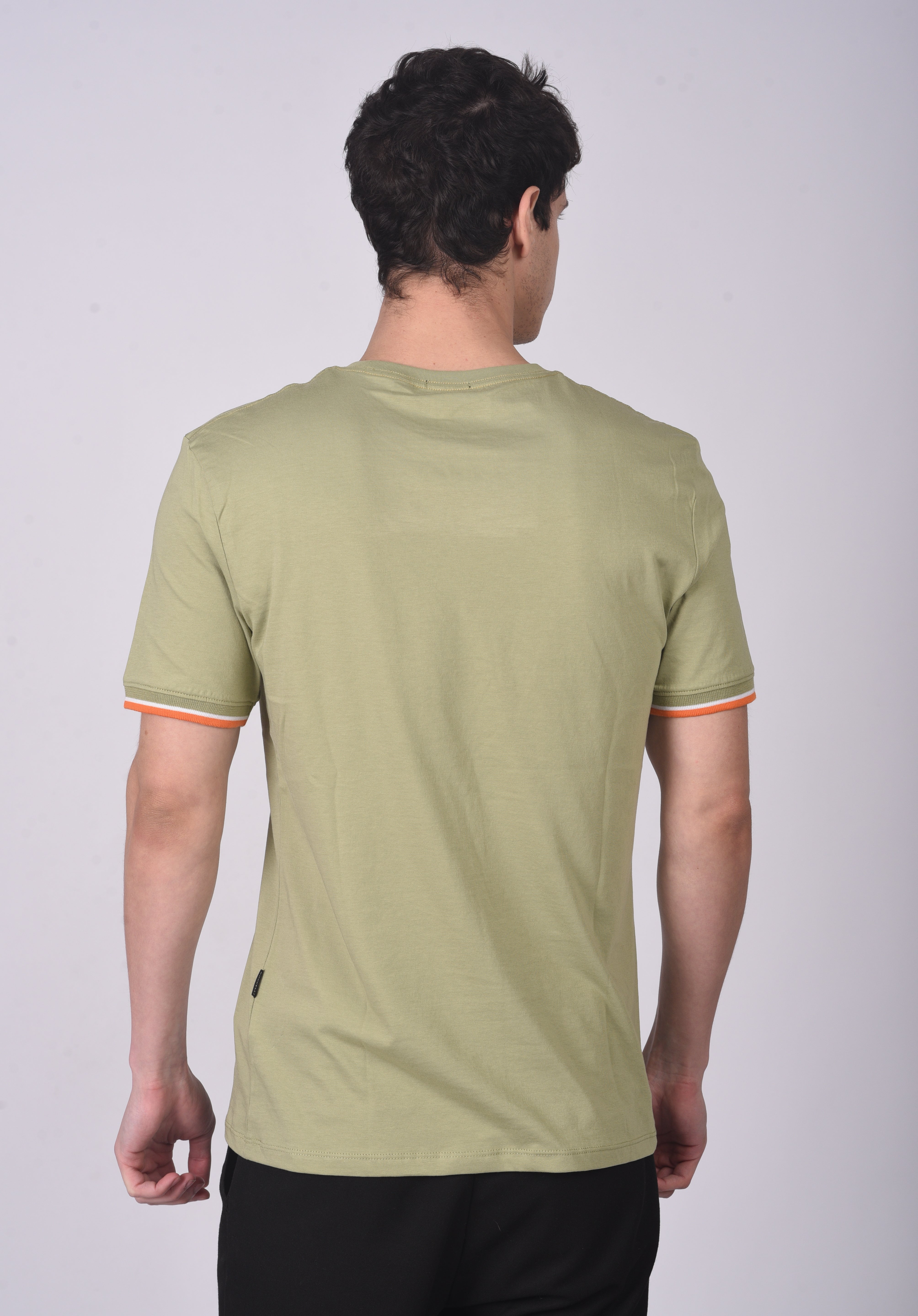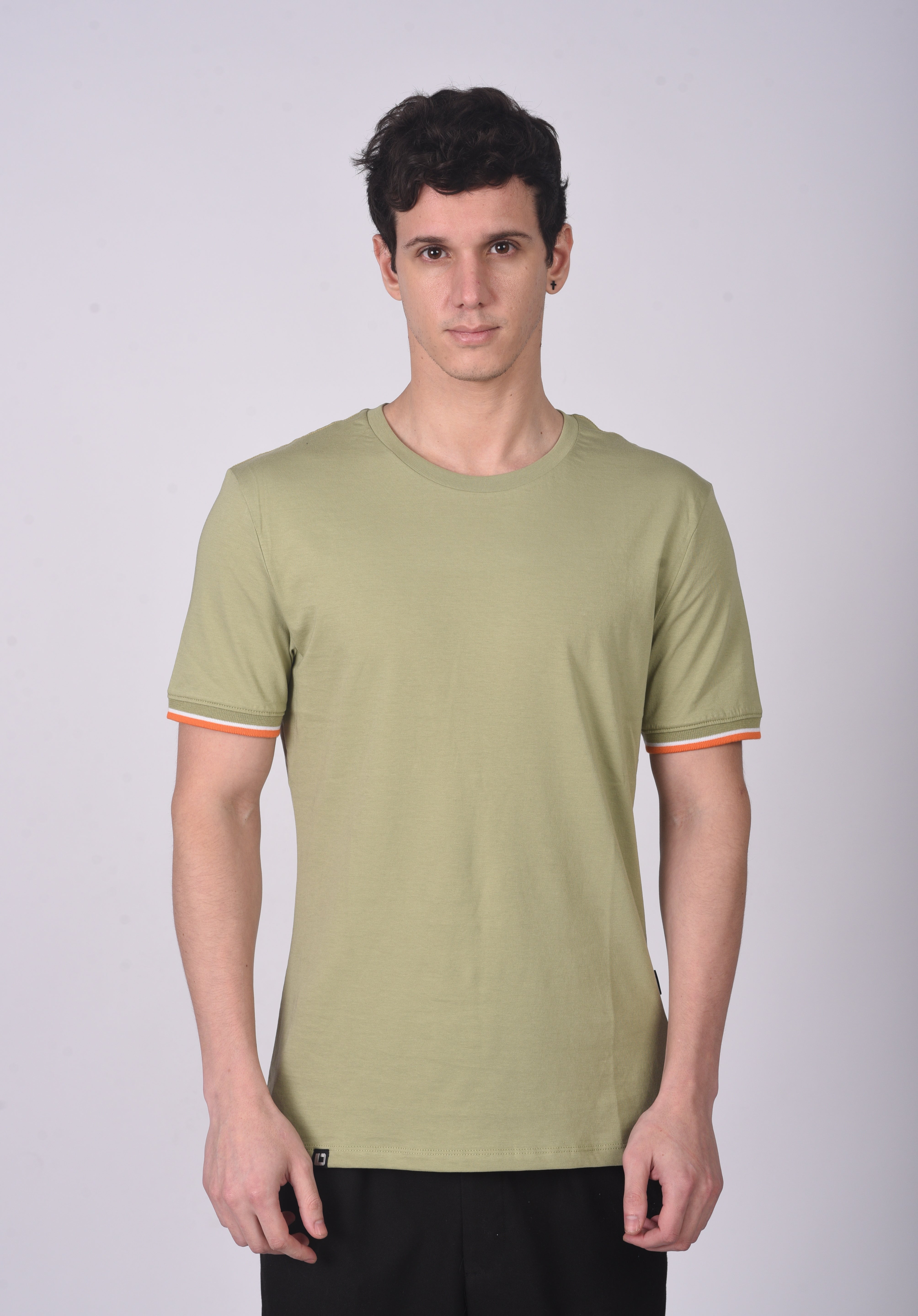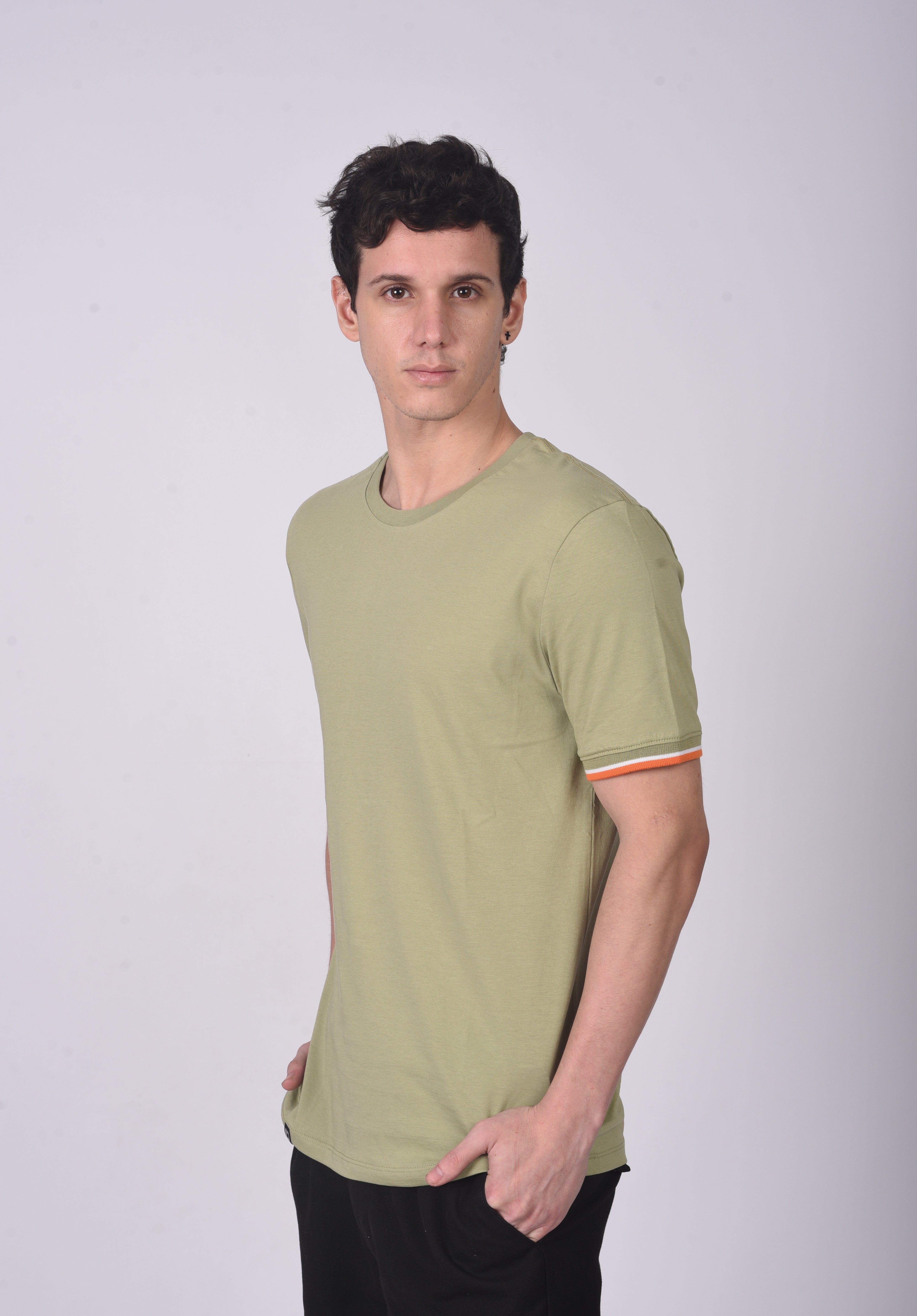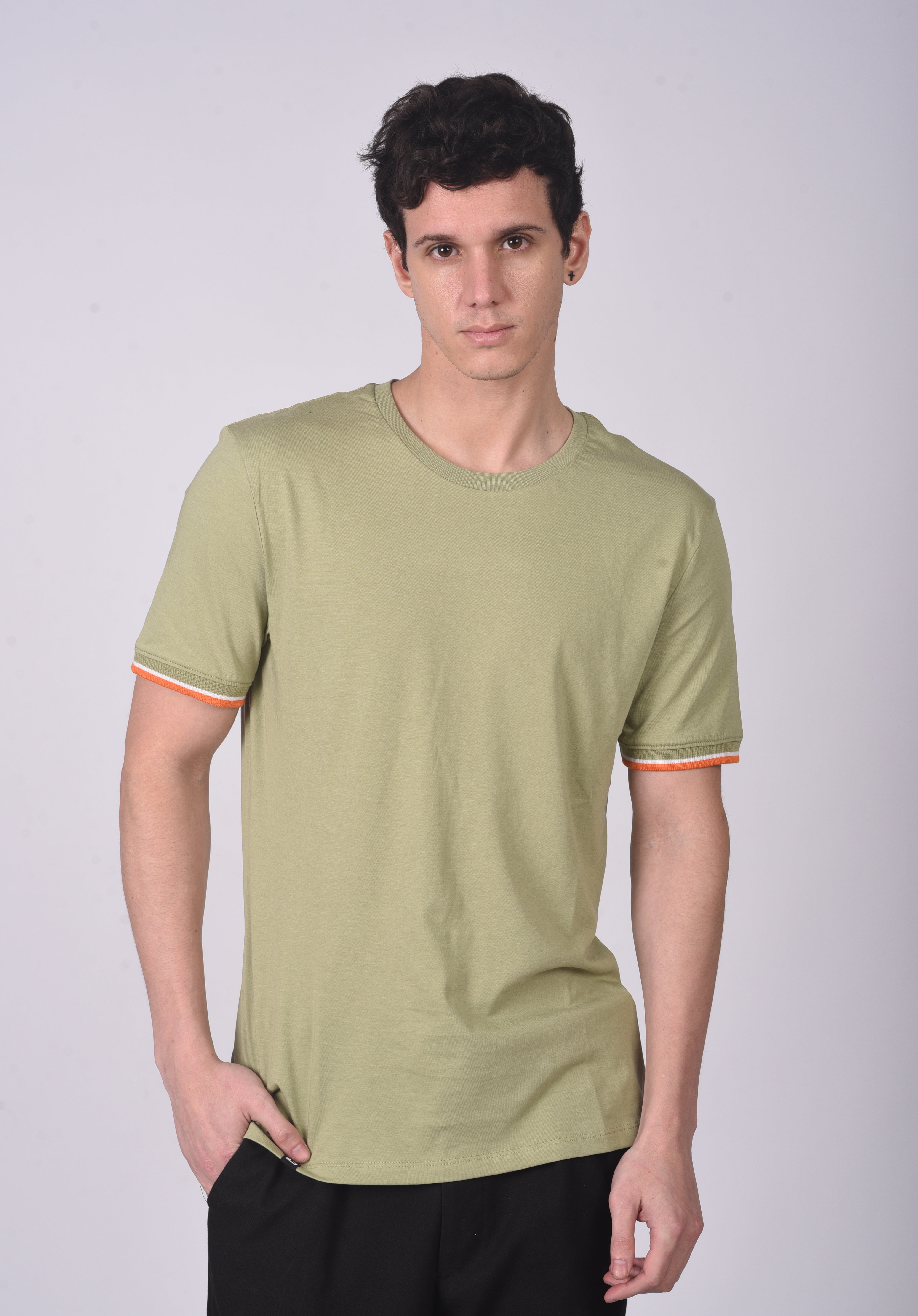 Polo Cuello Redondo Manga Corta Puño Rayas Verde